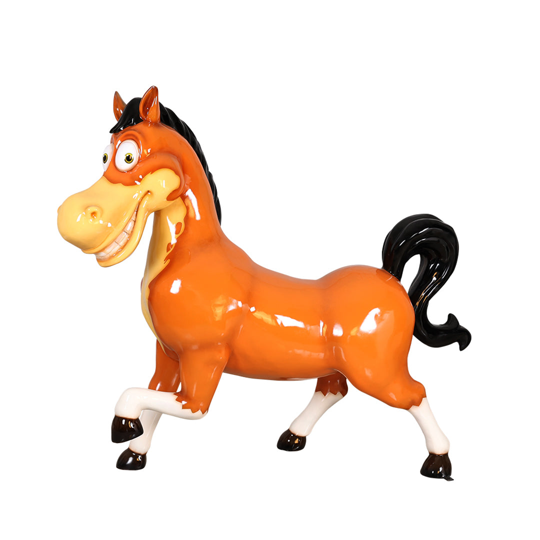 Create an amazing themed display for your visitors with this comic horse statue. This product is an eye-catcher and will attract visitors to your establishment. It is sculpted in the finest detail and is made of durable fiberglass resin that can withstand any weather. It is an ideal display on any indoor and outdoor spaces.