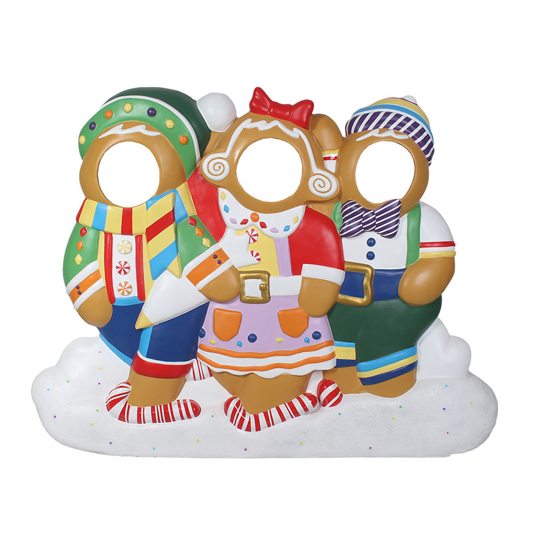 Gingerbreads on icing photo op made of fiberglass for Christmas decoration and display.